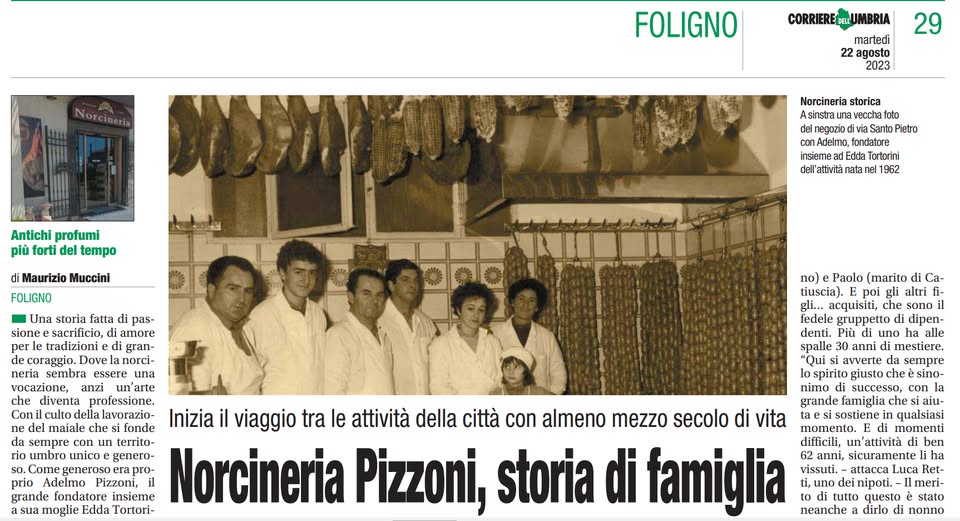 La Norcineria Umbra Pizzoni, attiva dal 1961 a Foligno, è una realtà storica dell'Umbria che ha saputo preservare la tradizione norcina artigianale, portando i sapori autentici del territorio umbro in tutta Italia.